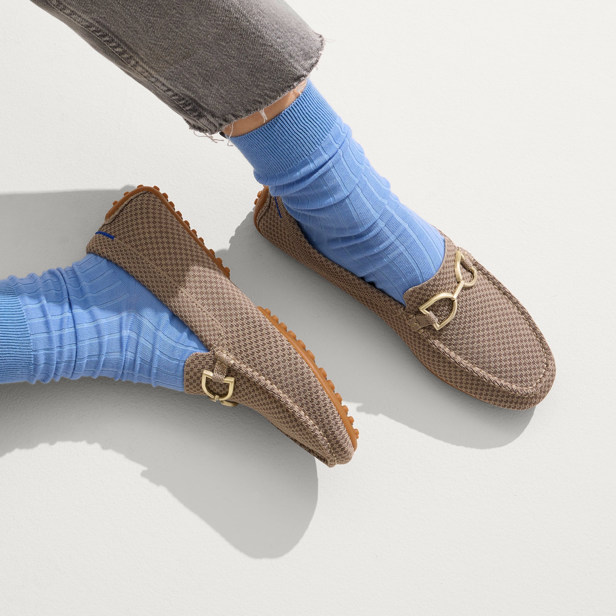 • A gold hardware signet bit on the vamp adds a luxe touch.