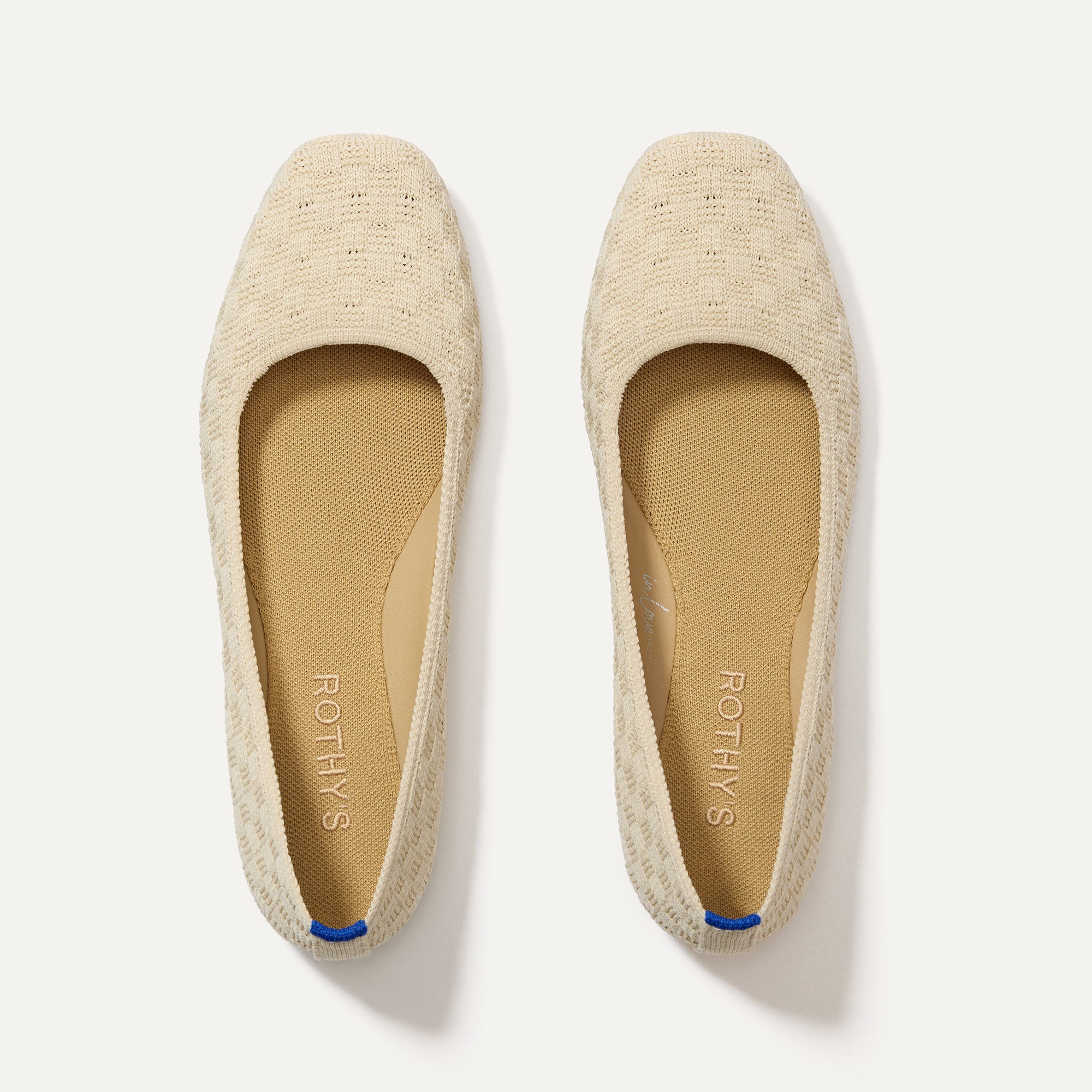 - Soft. flexible upper with a basketweave pattern in ivory.
