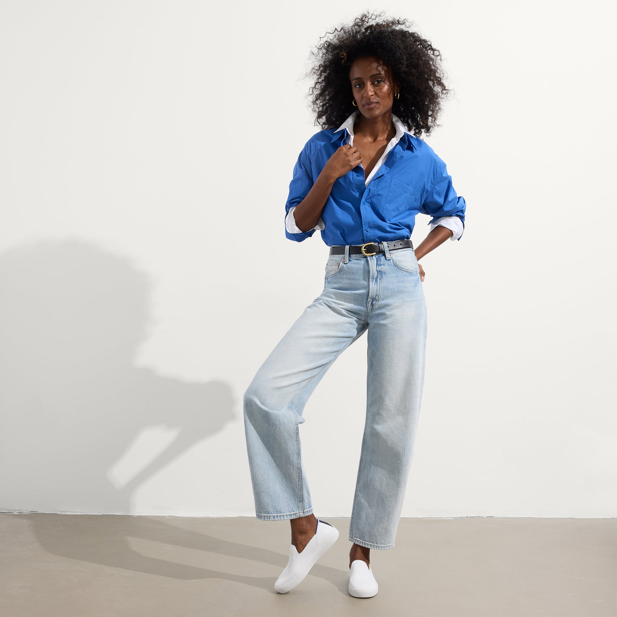 - Comfortable insoles in Rothy’s blue and durable outsoles in white.