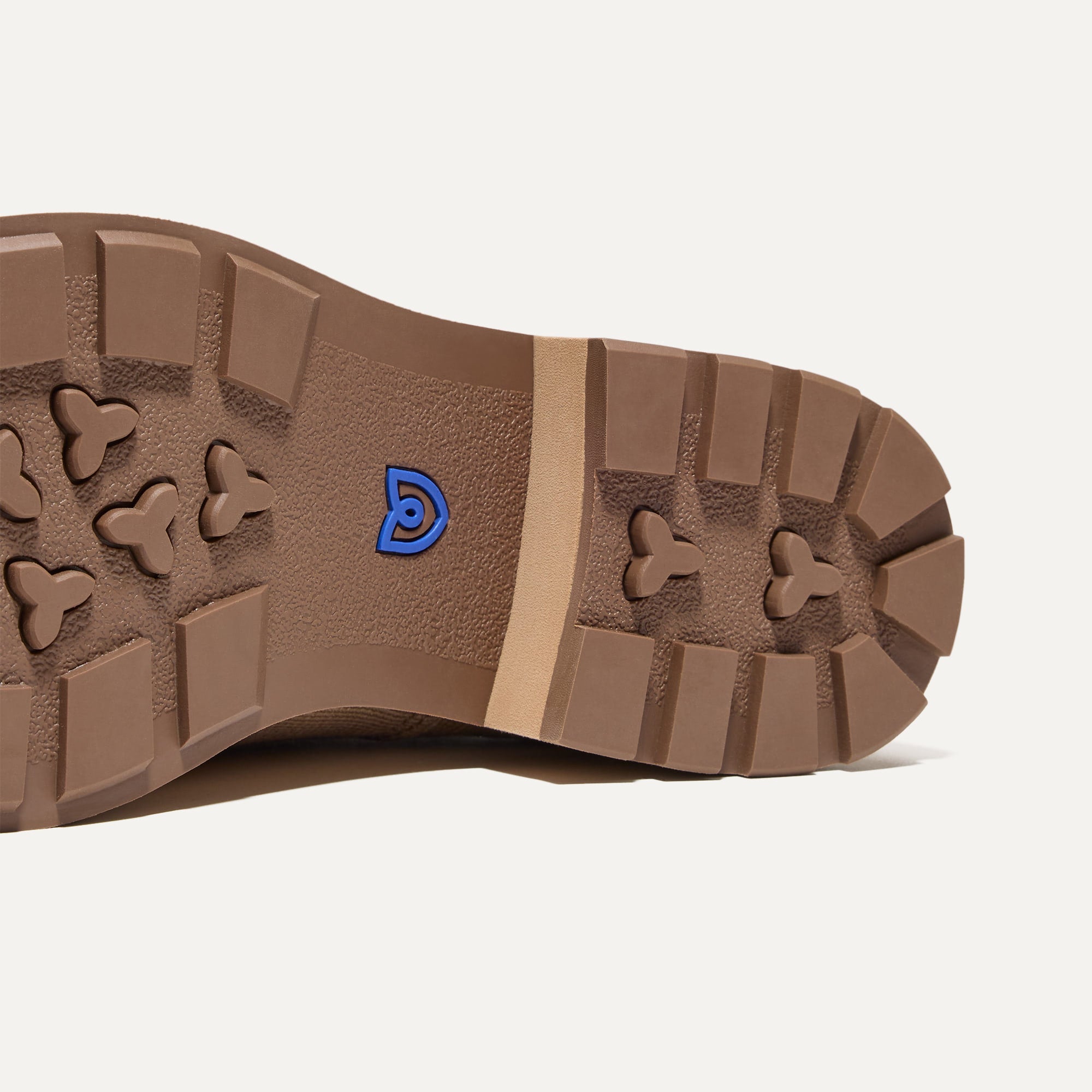 - Lightweight rubber lug sole in saddle brown with durable traction.